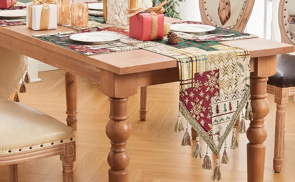 Patchwork Table Runner With Tassels Table Runner For Dining Room | Desertcart Togo